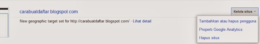 - Klik tombol KELOLA SITUS yang terdapat di sisi kanan blog yang akan anda verifikasi kepemiliknnya,