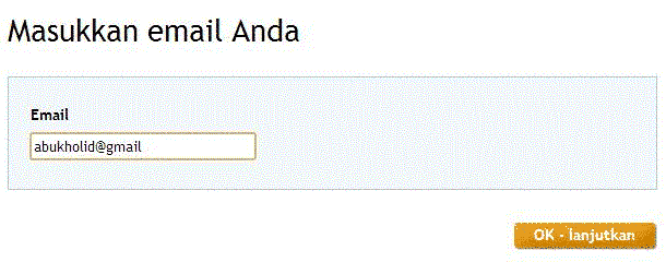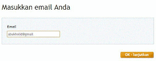 7. Masukkan alamat email anda, misal: abukholid@gmail.com. Jika anda belum memiliki email maka silahkan buat email terlebih dahulu, silahkan ikuti panduannya di link ini: Cara Membuat Email terbaru