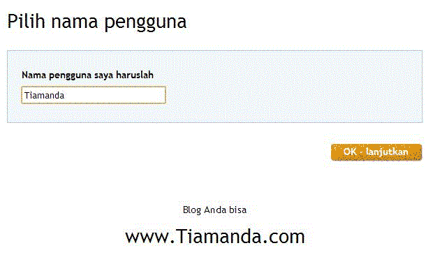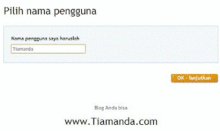 5. Nama Pengguna saya haruslah, (isi dengan nama yang ingin anda gunakan sebagai nama blog) lalu tekan OK, lanjutkan