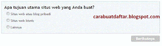 8. Silahkan pilih salah satu (situs web atau blog pribadi, situs web bisnis dan lainnya) lalu tekan Berikutnya