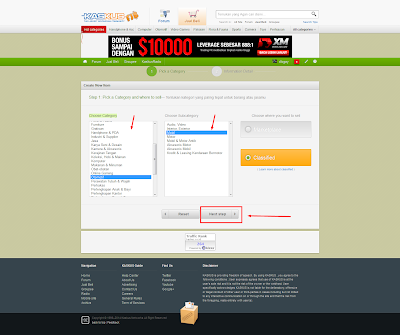 Lanjut ke proses posting barang. Setelah anda klik tombol Start Selling anda akan dibawa ke halaman selanjutnya untuk memilih kategori barang yang akan dijual. Di sebelah kanan kolom Create New Item terdapat beberapa kategori barang yang bisa anda pilih sesuai jenis barang anda. Setelah memilih kategori anda akan diminta untuk memilih sub kategori jika memang ada. Jika tidak maka anda bisa langsung klik tombol next step.