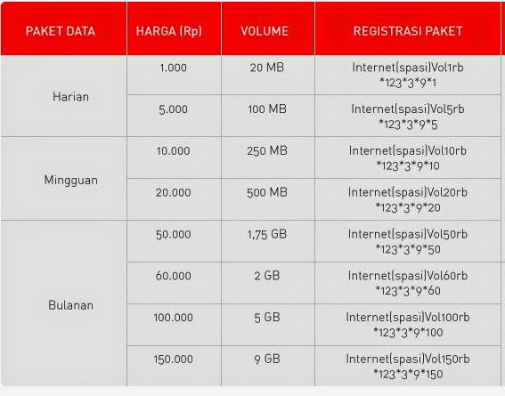 Untuk cara daftar paket internet smartfren volume based beserta harga nya anda dapat melihat gambar tabel dibawah ini :