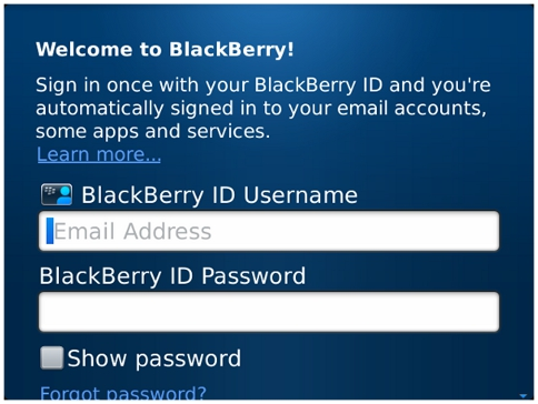 - Langkah selanjutnya, anda masukkan Account yang baru. Jika ingin membuat account anda yang baru, anda bisa melakukannya dengan cara mengklik pada link nya‘Create a Blackberry ID Learn More’