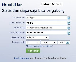 - Tanggal lahir : pilih tanggal, bulan dan tahun kelahiran anda (lebih baik kalau valid, kalau tidak sesuai tidak masalah)