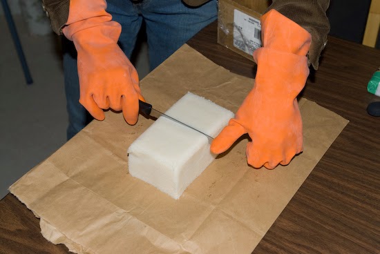 - Potong sabun tersebut sesuai dengan keinginan anda. Aman digunakan minimal seminggu kemudian, malah semakin lama maka akan semakin baik karena akan mengendurkan pengaruh soda api yang ada dalam sabun.