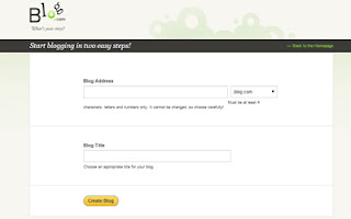 - Selanjutnya Anda akan diminta untuk membuat url blog dan nama blog. Jika nama blog yang Anda inginkan sudah digunakan oleh orang lain bisa mengganti dengan nama lain yang tersedia. Apabila nama url blog tersedia (untuk yang gratis gunakan url dengan domain (.blog.com), silakan beri nama blog Anda. Jika sudah silakan "Create Blog".