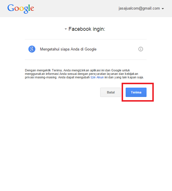 5. Disini saya menggunakan email dari Google Mail, jadi akan muncul pop up seperti ini, mungkin akan berbeda jika anda menggunaan email dari yahoo mail, akan tetapi intinya adalah sama karena anda akan dimintai konfirmasi saja.