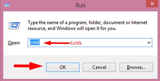 - Kemudian ketik kata "cmd" setelah itu tekan tombol ENTER atau klik OK