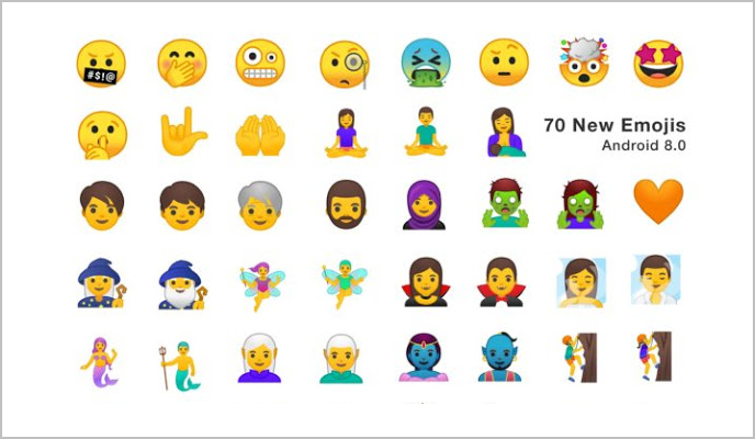 Aktivitas chatting di smartphone Android memang lebih asyik kalau memakai emoji sebagai 'aksesoris' pesan chat yang dikirimkan. Pada Android 8.0 Oreo, emoji telah dirombak sedemikian rupa yakni dengan penambahan 70 jenis emoji baru serta memiliki bentuk yang lebih realistis.Perubahannya terletak pada karakter yang lebih spesifik, misalnya emoji dengan karakter ibu menyusui, bapak-bapak berjanggut, zombie pria dan wanita dan masih banyak lagi yang lain.