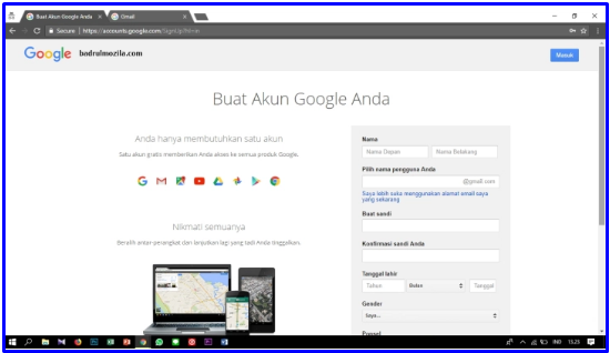 Kemudian untuk mengakses Email anda yang akan anda gunakan untuk mengirim surat, file, foto, video bisa langsung ke halaman gmail(dot)com atau bisa anda klik disini.