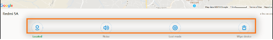 5. Jika kamu perhatikan pada bagian bawah peta, maka kamu akan melihat beberapa menu diantaranya Located, noise, lost mode dan wipe device seperti gambar di bawah ini.