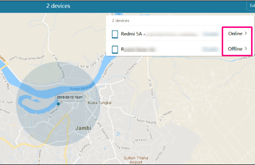 4. Maka secara otomatis akan muncul peta yang menunjukkan lokasi HP Xiaomi kamu berada. Jika terdapat lebih dari satu perangkat yang terhubung dengan akun Mi kamu, silahkan pilih salah satu dari beberapa perangkat tersebut. Lokasi HP Xiaomi kamu akan tampak di peta walau dalam keadaan aktif (Online) atau dalam keadaan mati (Offline).