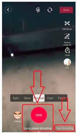 - Jika sudah memilih fitur yang ingin kamu gunakan, maka selanjutnya merekam video kamu dengan menyentuh dan tahan tombol Hold . Kamu juga bisa menggunakan Tap shooting untuk merekam video hanya dengan satu kali sentuh.