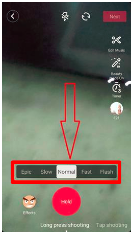- Berikutnya kamu bisa gunakan beberapa fitur yang ada seperti untuk mengatur jenis gerakan video seperti Epic, Slow, Normal, Fast dan Flash.