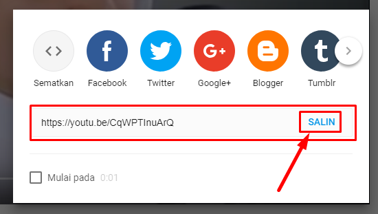 Langkah 4: Maka akan muncul pop up, Silahkan copy link video yang tampak pada pop up dengan cara klik opsi SALIN.