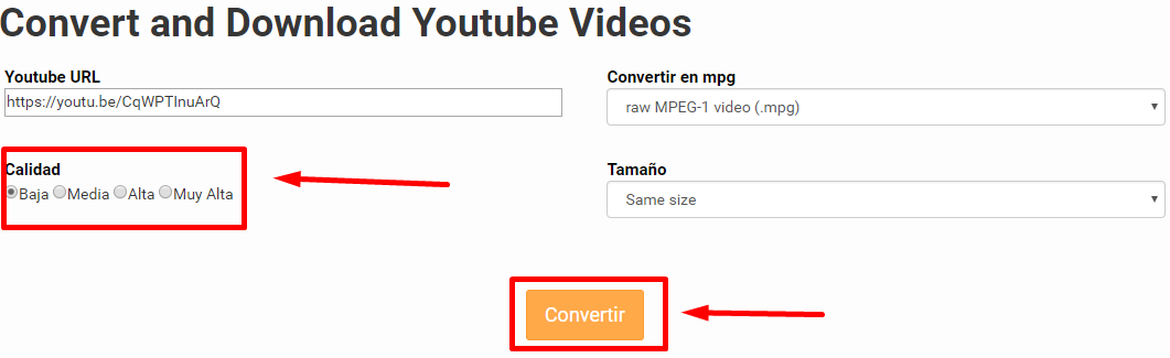 Langkah 7: Pilih kualitas video pada bagian Calidad, disana kamu bisa memilih Baja (Rendah), Media (Sedang), Alta (Tinggi), Muy Alta (Sangat Tinggi).