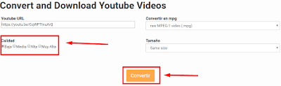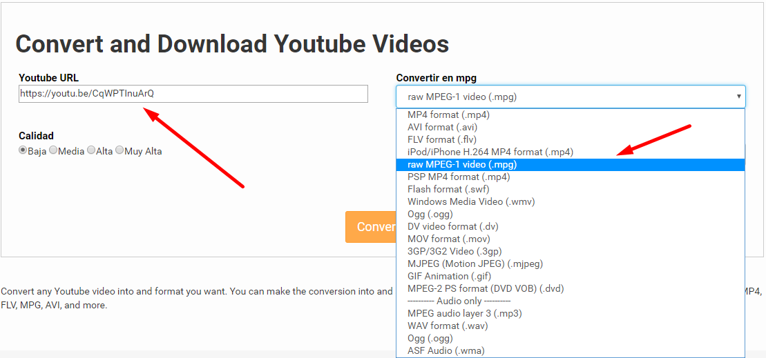 Langkah 6: Kemudian paste link video Youtube yang sudah kamu copy sebelumnya pada kolom Youtube URL. Kemudian pilih format .mpg pada kolom Convertir en mpg.