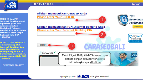 - Setelah itu sistem BCA akan minta otentifikasi jadi anda hanya diminta untuk login lagi seperti di awal.