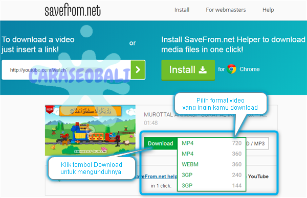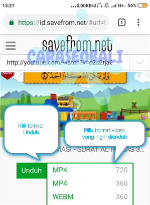 - Selanjutnya kamu akan dibawa ke halaman savefrom.net. Silahkan pilih format video yang ingin kamu download.