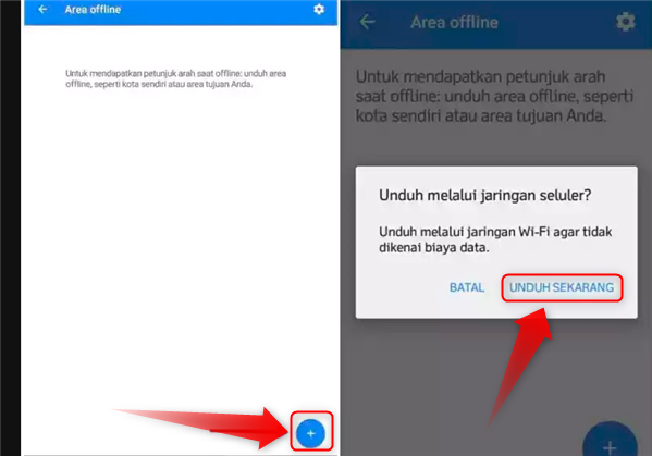 3. Lalu sentuh ikon + yang ada di pojok kanan bawah. Kemudian akan muncul popup seperti gambar di bawah ini, silahkan pilih dan sentuh UNDUH SEKARANG, jika kamu ingin mengunduhnya menggunakan data seluler.