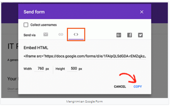 - Untuk mengirimkan Forms Anda pada disosial media yang anda miliki Anda tinggal Klik salah satu ikon media sosial.
