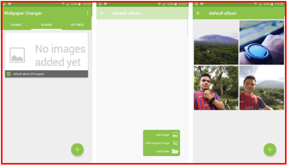 4. Selanjutnya swipe ke bagian album. Lalu tekan tombol + dan tekan opsi add image. Pilihlah gambar untuk anda jadikan wallpaper.