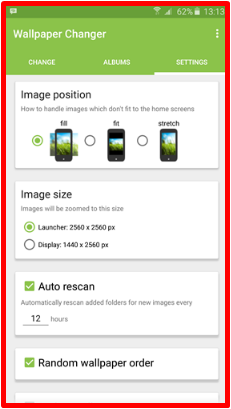 3. Terdapat tiga pengaturan di aplikasi ini, mengubah wallpaper sesuai waktu yang ditetapkan, mengubah wallpaper di lockscreen, dan mengubah wallpaper dengan melakukan double tap pada layar. Sekarang pilih opsi 1 dan 2 jangan lupa atur waktu pada opsi pertama sesuai keinginan.