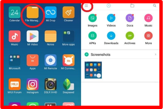 Langsung saja ikuti langkah-langkah dibawah ini.* Pertama buka terlebih dahulu file manager anda, klik ikon berlambang garis tiga di pojok kiri atas, kemudian pilih menu setting.