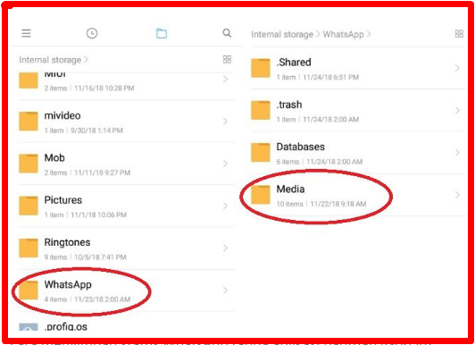* Setelah itu kembali ke fitur file manager dan pilih menu device ini akan menampilkan semua folder. Lalu geser kebawah klik folder whatsapp kemudian kalian klik folder Media.