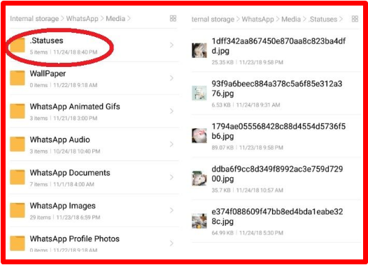 * Kemudian kalian klik folder .statuses Disana kalian hanya tinggal mengkopi file yang kamu inginkan ke folder lain.