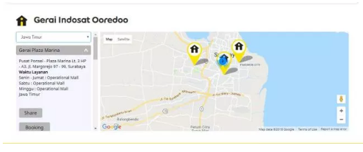- Hal pertama yng harus dilakukan adalah mencari gerai Indosat terdekat di kota anda, anda juga bisa mengeceknya disini: indosatooredoo.com/gerai . Pada laman tersebut juga tersedia jadwal serta tombol untuk booking antrean.