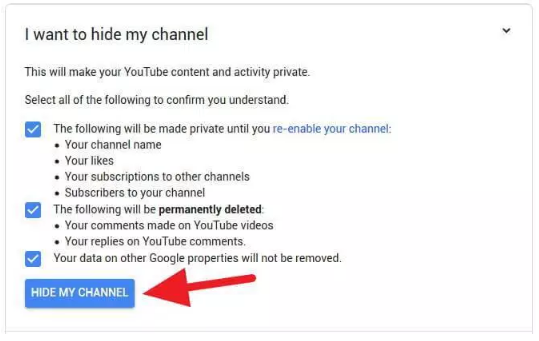 3. Kemudian kalian pilih opsi I want to hide my channel.