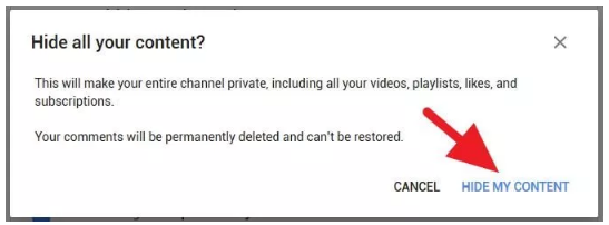4. Selanjutnya centang semua opsi yang ada, lalu klik Hide My Channel.