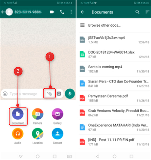 1. Buka aplikasi WhatsApp di HP kalian. Buka chat orang yang akan kalian kirimi foto.2. Tap atau sentuh icon Attachment > Document.