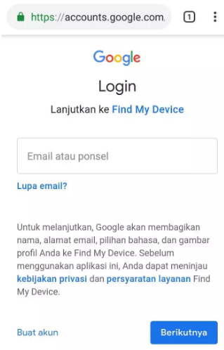 2. Lalu login memakai akun Google yang terhubung dengan hp kalian yang terkunci.