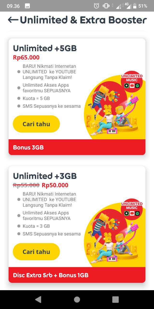 Catatan: Khusus nomor 2, tidak memiliki paket gratis Youtube.